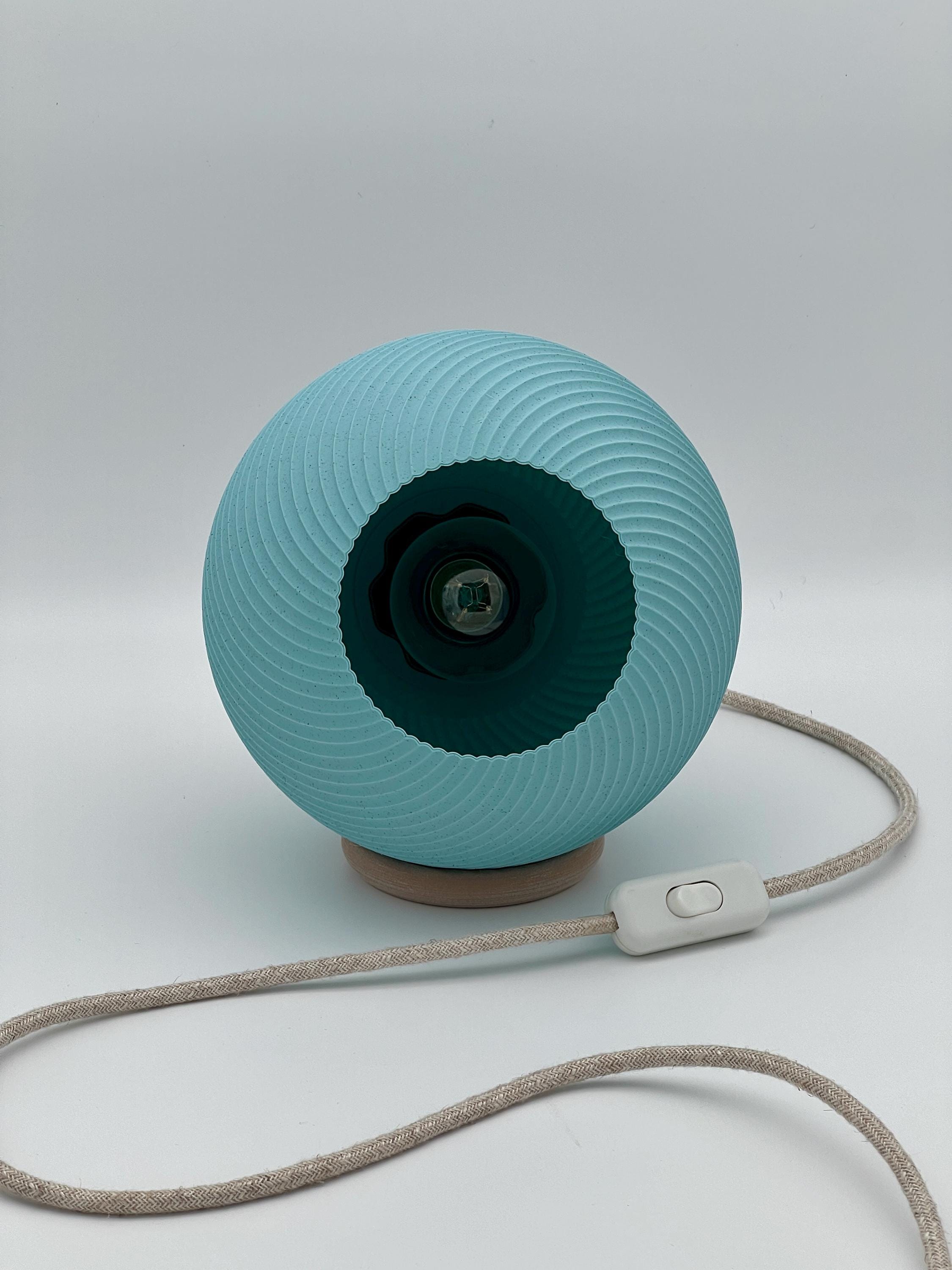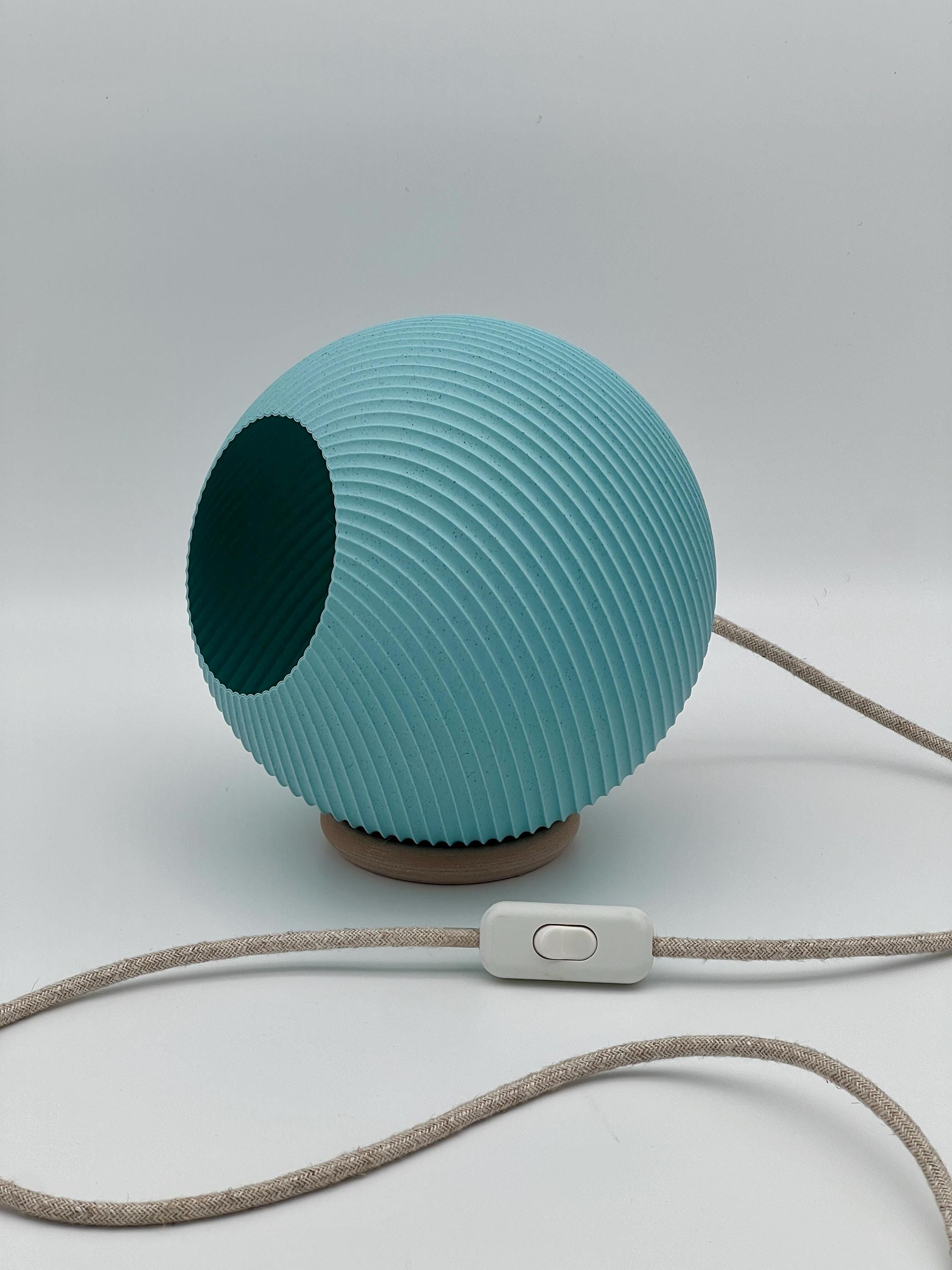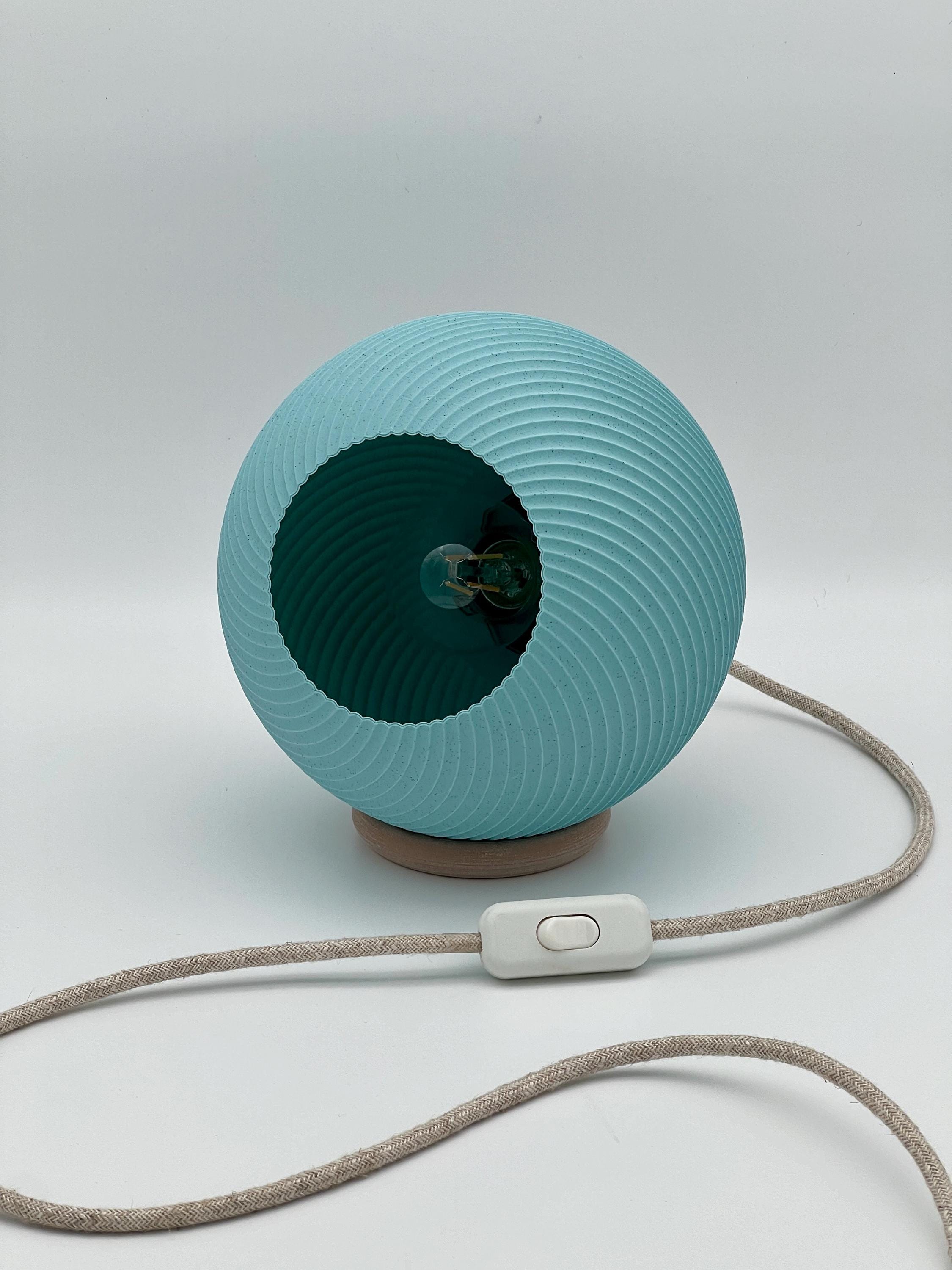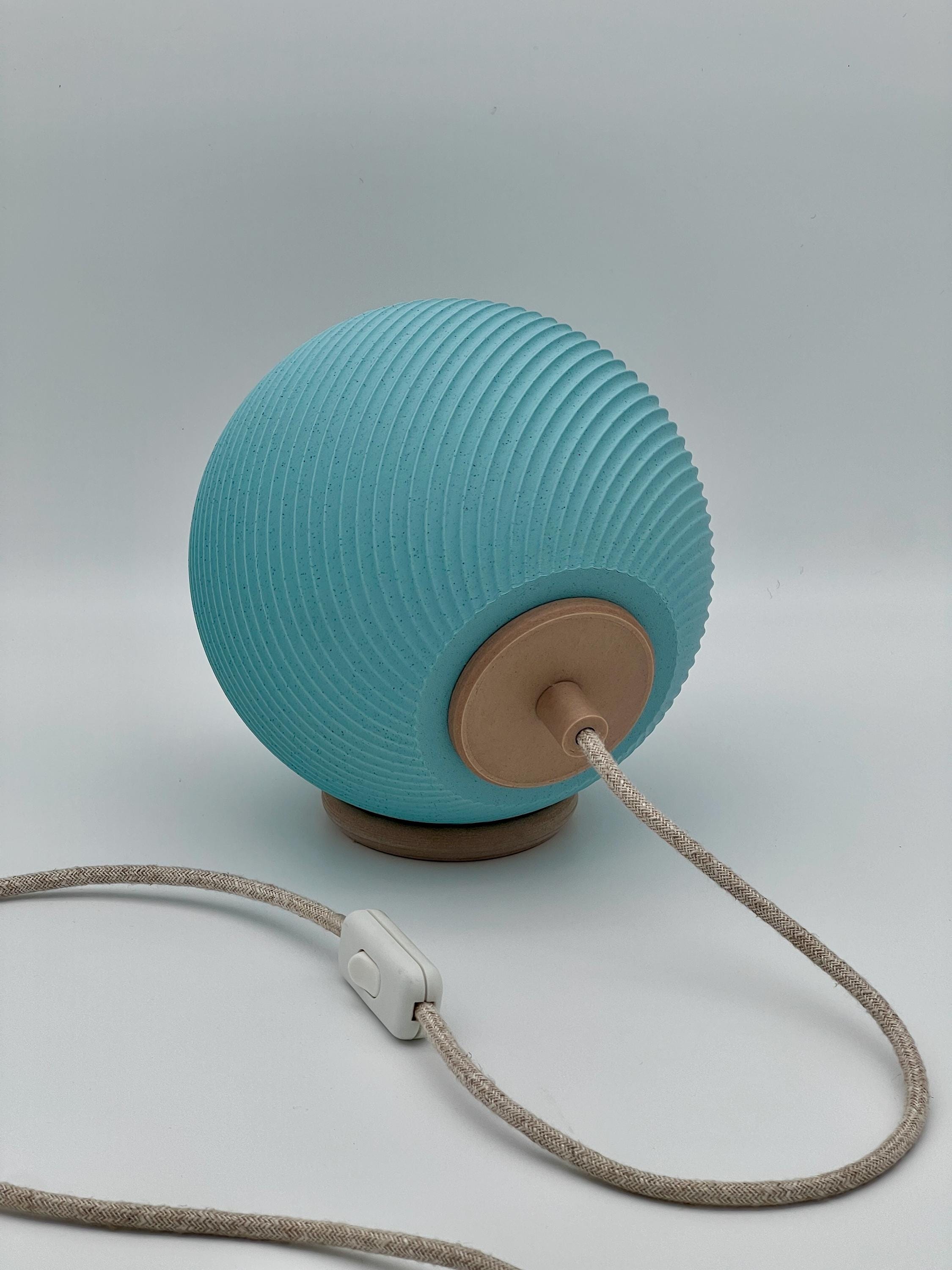 All raw materials are made from recycled materials. The socket and cable are sourced from Austria. The shade is manufactured using FDM 3D printing. The cable is covered with a high-quality fabric braid.