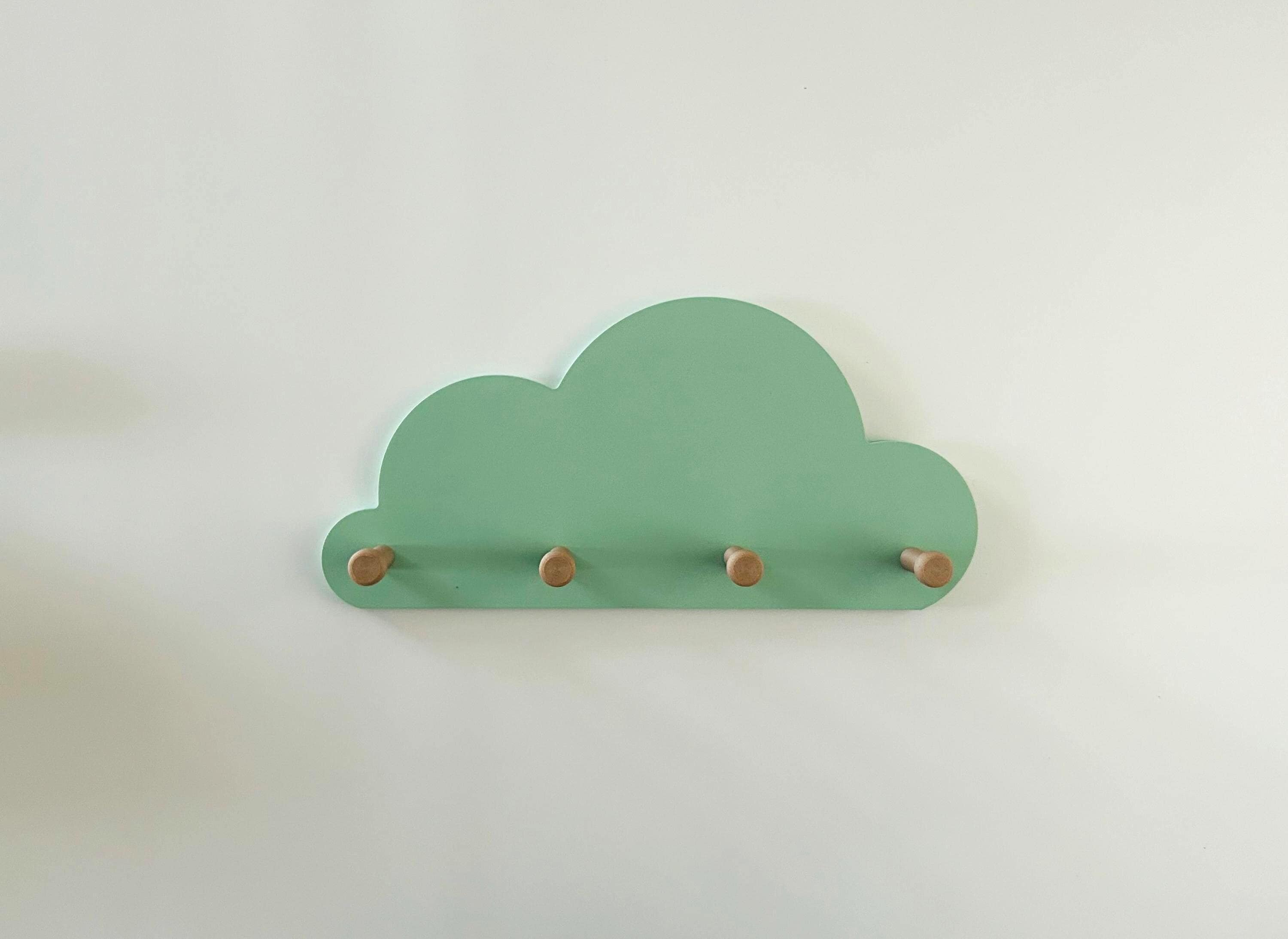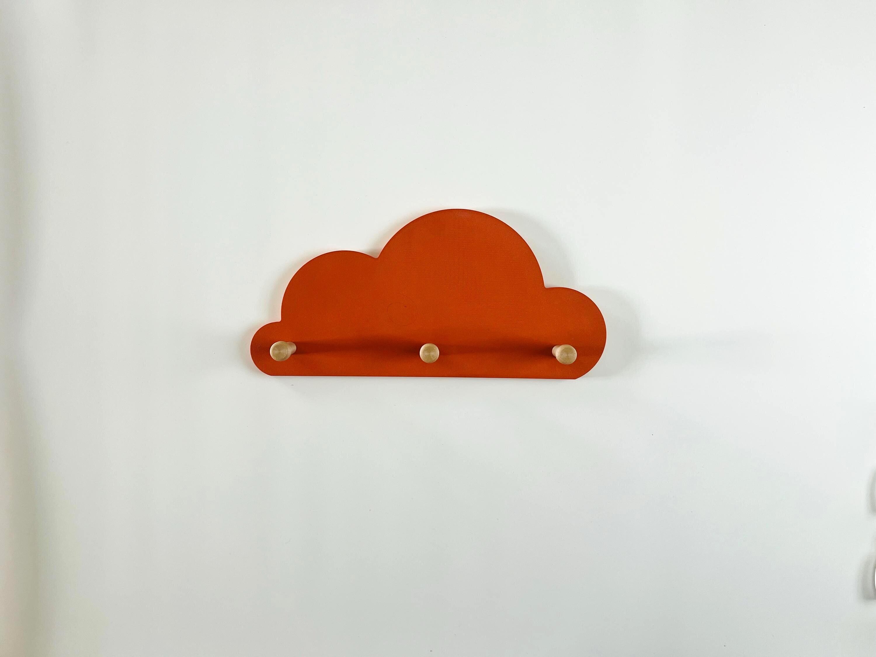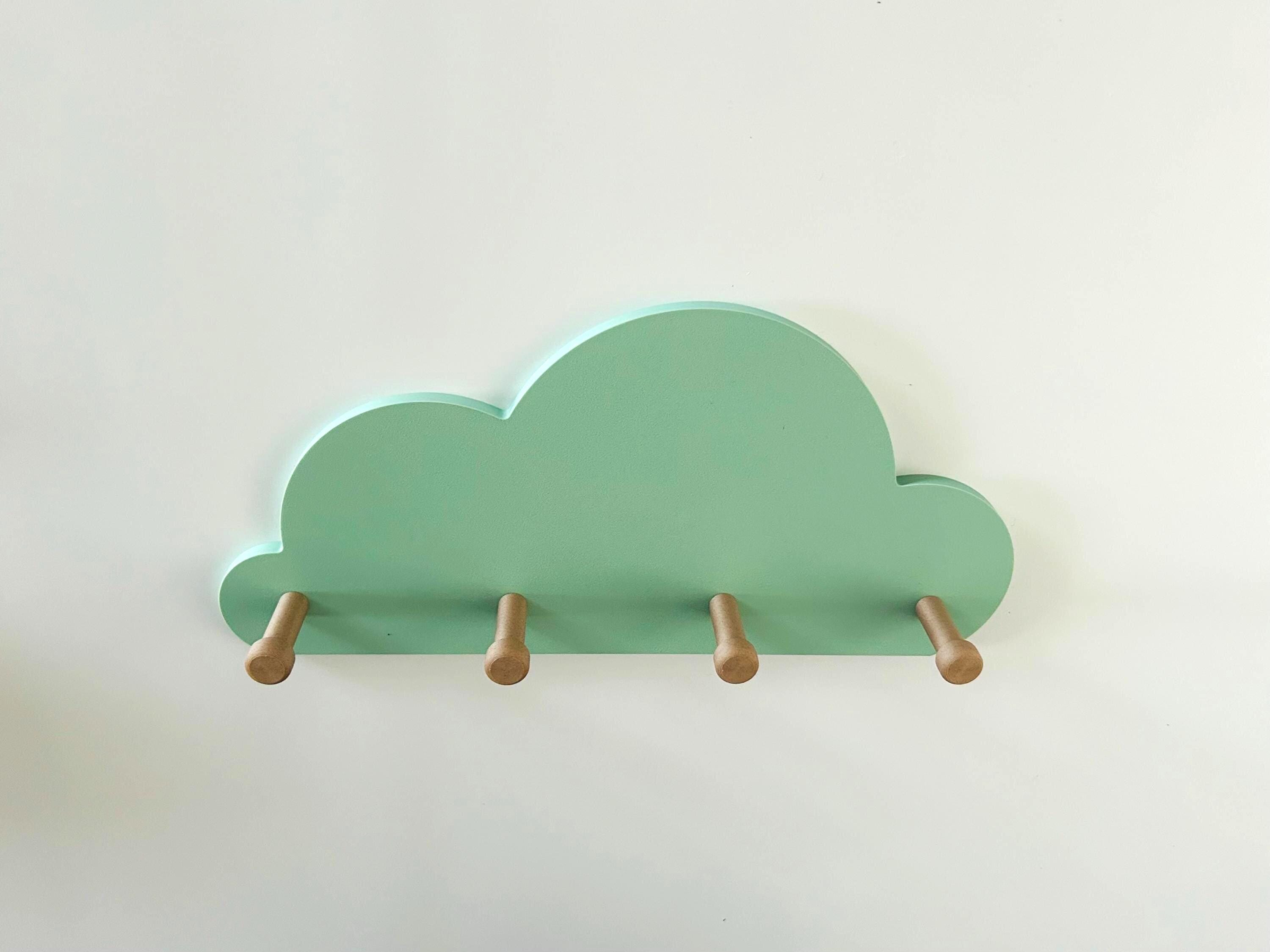 Great cloud-shaped wall shelf with 3 wooden coat hooks.
